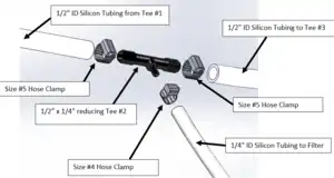 Use hose clamps and reducing tees to construct the filter arm middle tee