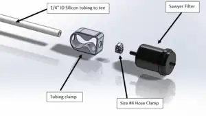 Exploded view of 1/4" tubing to Sawyer Filter