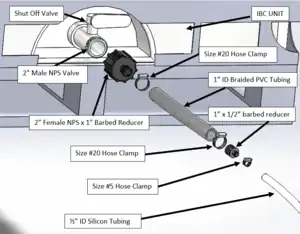 Assembling 2" to 1" reduction line from IBC Unit Exploded View of IBC X 2”-1/2” reducing section
