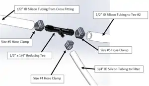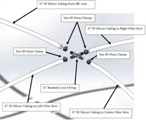 1/2" ID Silicone Tubing (≤6 ft sections) All three main arms and feeder to the Cross Fitting 10