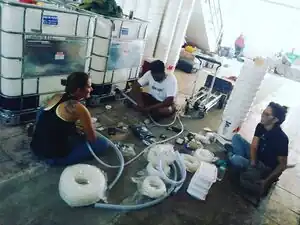 Nine station water filtration with an IBC aka Boriken Watta system