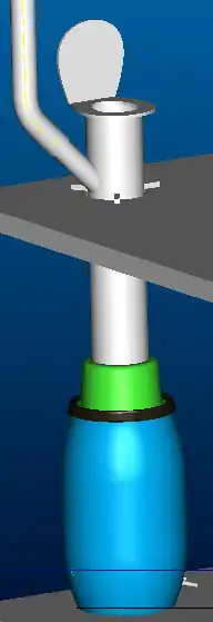 Picture of the installed toilet stool and ventilation pipe. Fan is installed inside the pipe just above the ceiling.