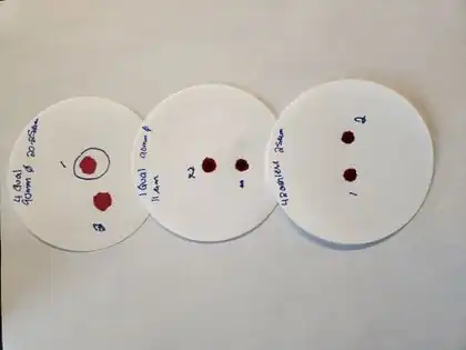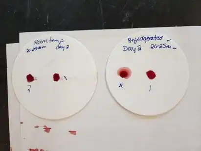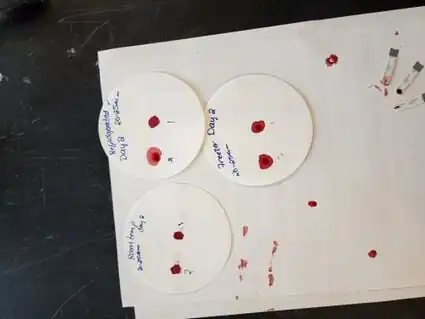 Testing was also performed to choose a pore size for the filter paper on which the tests were to be conducted. 1mL of blood was placed on the filter paper and allowed to spread. For our purposes the blood would need to spread throughout the entire testing strip so the filter paper that allowed for the most spread was picked. The filter paper that was chosen was the 4 Qualitative at 90mm an 20-25 micrometers.