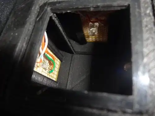 When putting in the box, cut 3 PCBs the size of 200x350mm and solder each LED on a PCB with the encoder sensor looking at it (so each PCB will have a LED and a reference encoder). The final third encoder sensor goes on a PCB of its own. The following images show the layout inside the box: