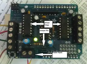 The terminal M+ and GND must also be connected to a power source of no more than 12V 350mA. 5 V 800mA is sufficient to control 2 steppers. If a single power source is used it is necessary to keep the jumper attached to the PWR pins.