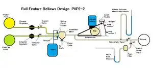 * Be reliable (work for >= 14 days at 24 hours/day). * Provide two settings for volume of air/air O2 mix deliverd per cylce/breath (450 ml +/- 10 ml per breath and 350 ml +/- 10 ml per breath) * Provide the air/air O2 mix at a peak pressure of 250 mm H2O * Patient supply pipework to remain pressurized at all times to 150 mm H2O * Have an adjustable rate of 12-20 cycles/breaths per minute. * Deliver at least 400 ml of air/air O2 mix in no more than 1.5 seconds. * Built from O2 safe components. * Capable of breathing for an unconscious patient. Ability to sense when a patient is breathing is desirable. * Supply pure air and air O2 mix at a range of concentrations (at 50% and 100% O2). * Support connections for hospital O2 supplies. * Be compatible with standard COTS catheter mount fittings (Male: 15 mm; Female: 22 mm). * Fail SAFE: having alarms for at least pressure loss and O2 loss.
