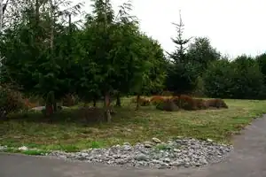The trees and shrubs were planted in clusters around the property and in combinations in which they are thought to grow in nature (Fig. 3). The clusters make them easier for the maintenance staff to care for and are separated by meadows (Fig. 3). Trees were also specifically planted around the edges of the Potawot property.[2] On the south side, redwoods were planted to block noise pollution from the nearby freeway (Fig. 4). Although it is unlikely that they are native to the Potawot/Arcata Bottoms area they are considered culturally significant to the local tribes and so were included within the design. On the north side, more wind tolerant species of trees were planted, including spruce and shore pine, to help block the North winds and protect the garden. Near the storm water treatment ponds, designers did not plant trees in an effort to discourage birds of prey from inhabiting the wetland areas, therefore ensuring the presence of wetland birds (Fig. 5).[2]