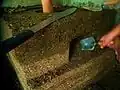 - "tamper" (aplanadora manual) puede ser de metal o de madera reciclada