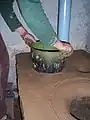 - Cocinando sin tapas durante una prueba de cocina. Cuando se cocina con sartenes tapados se ahorra un 40% de combustible, un cambio que puede ser más eficiente con las estufas mejoradas[7]