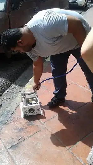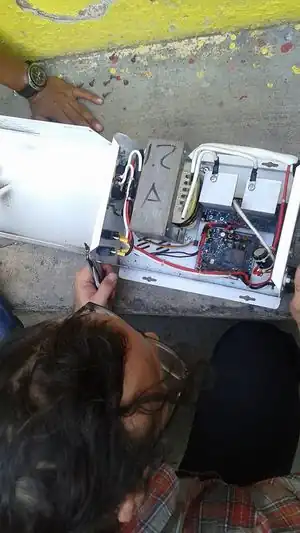 | June 5 | The inverter was taken to SM Electronica by local electrician and taxi driver, Tito, to be fixed. The team called Eddie to ensure that he had the tools needed to construct a compartment to hold the batteries at the system in Ghetto2Garden for next Thursday's proposed construction meeting. (Update: Tomas informed the team that there is a shelf sturdy for the batteries). Therefore, communication is a vital component as the team spent a lot of time and energy planning the shelf and with this new information we are able to adapt to new circumstances and use the materials in another way. | ![]() |