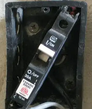 - Turn the 30 amp breaker for the solar panel off and the 63 amp breaker for the battery on