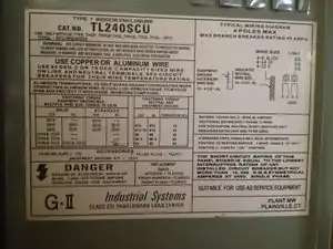 | Breaker | 63 amps, shuts off current to batteries | ![]() |