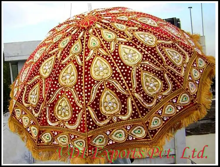 Embroidered wedding umbrellas of nearly parabolic shape and dimensions are honored throughout India ...