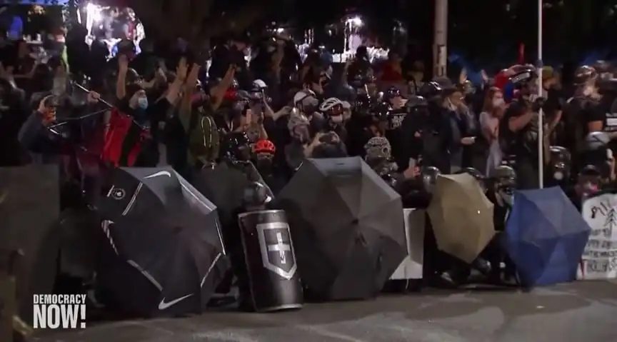 Umbrellas Shield Anti-Racist Portland Protesters From D.H.S. Troops