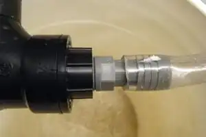 - First, screw in the compression fitting for the 3/8" connection to the 1 1/2"to 3/8"connector