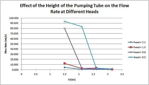 In this test, two variables were changed, the hydraulic head on the pump, and the height of the pumping tube.