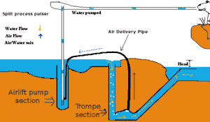 The pulser pump simply uses the trompe part to power the airlift part. A video explaining the pump can be seen here.