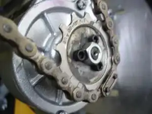Mount flywheel to gear side of crank at the bottom bracket using spacers to prevent interference with chain.