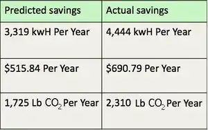 - RCEA reported an annual energy savings of 3,319 kwH/Year (predicted).