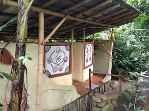 Rancho Mastatal in Costa Rica has an award winning floating drum biodigester toilet. Jose Luis Zuñiga of Rancho Montezumo, a coffee producing ranch near Puriscal, Costa Rica, helped Rancho Mastatal with the design and construction of the biodigester. The biodigester processes human fecal waste in an anaerobic environment, and its byproducts are compost and methane. The compost deposits into the forest below the biodigester, and the methane is fed to the main house kitchen where it is used to cook food.