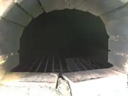 | This is the cooking shelf. A constant cross-sectional area is used throughout the oven - similar to a rocket stove. | |