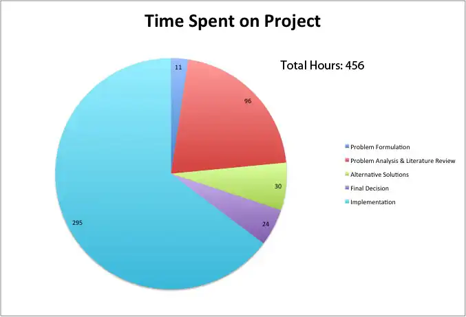 The pie chart below shows the amount of hours spent on each phase of the engineering design process.