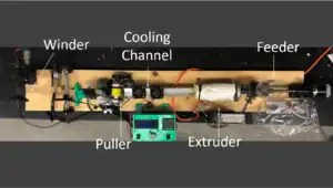- Allow filament to be wound around the spool. Add filament to chamber, adjust motor speed, fan speed and temperature as needed.