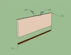 This is the shear brace for the table. Glue clamp/nail T55 to CBL and position LBA’s on the top side.
