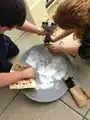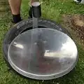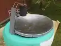 Parabolic Heater- Focuses the Sun's energy to a point where the wax has been placed.