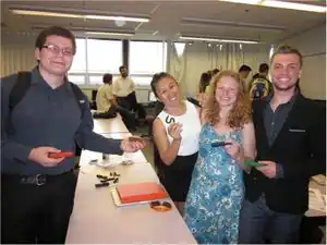 Team SuperStar's (pictured right) goal, and challenge, was to design a 3-D printed object that would add value to the waste stream. And that's what really makes the Solar Wax Melter with 3D Printed Molds different from other designs; it utilizes 3-D printing. Molds for crayons and candles were created using the 3-D design software, AutoCAD.