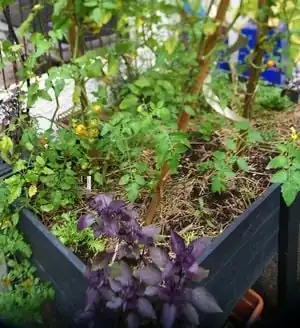 - Veggies and plants growing in recycled tires.