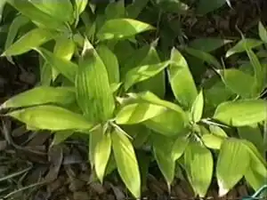 One of the more than 1000 species of bamboo. A small bushy plant with textured small and wide bright green leaves. A really attractive container or ground plant that likes plenty of water. Can be pruned to keep its shape. Grows to around 0.8 Metre.