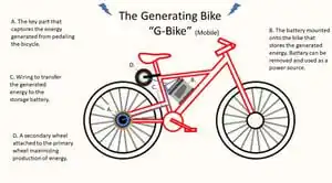 This project was developed based off of a concept from Sam Rusak of Sierra Nevada College that was entered into a sustainability contest and won. The "Gbike" was made with the intention of providing those without reliable power to create their own while being able to self-transport after the team was affected by multiple blackouts in Humboldt County.