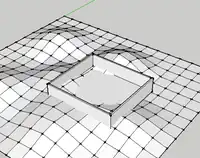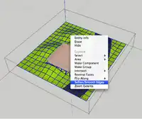 - Then you can start to adjust the starting grid using the SMOOVE-tool. Do double-click first to work within the group (grid) ! With the SMOOVE-tool you can create hills and pits. You may enter the exact height/depth, you can also enter the radius if you click on the SMOOVE-tool.
