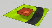 The terrains that are created with the Sandbox-tools are often very irregular in shape. If you try to place a house on this, it is often partially buried, or it partially floats over the terrain. To prevent this, you can use the STAMP-tool. This tool creates a flat base, unto which we can place the building on.