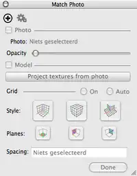 By clicking on the blue axis and dragging it, we scale the picture (note the figurine to set the scale properly). By clicking the "Done"-button in the MATCH PHOTO-window, you can confirm that you have set all the parameters, and that you wish to begin the modeling.