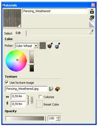 Here you can configure whether or not you want to work with a texture, indicate it which image you want to use as a texture, enter the scale of the texture, ... (note: if you check off the "use texture image" checkbox, the simple reactivating of the box will not be sufficient; you will need to look it back up)
