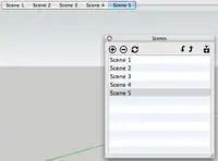 We just exported a view. Suppose we now decide to expand our model some more, and decide to export the exact same view again afterwards. This requires a lot of work: the camera needs to be reset, the shadow and fog settings need to be reset, ... Fortunately we can avoid this extra work by making SCENES. Scenes are comparable to cameras, but smarter. They remember the way on how we look to a 3D model: from what position, with what shadow settings, ...
