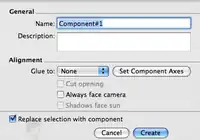 The most important thing here to enter is a name. This is a significant difference with groups: components must have a name. With groups, this was optional. You can also enter a description. Under alignment, you can set some advanced options: the component keeps focusing itself towards the camera, ...
