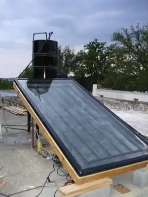 Another type can be called a batch heater, since it heats a volume of water using a thermosiphon, but uses a constructed solar collector to absorb the sun energy. Its limitation is that the tank is above the collector, which is on the roof or area exposed to the sun, so the hot water must be piped to the point of use, which costs heat loss. A special Communal solar water heating system has also been proposed using a batch heater.