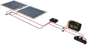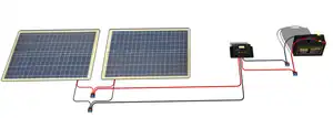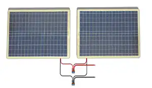 - ↑ Pictured here is the Eco-Worthy 20 Watt Epoxy Solar Panel with 2m Cable & 30A Clip for 12V Camping Battery Charger. Any two similar 12 V nominal ~20 W solar panels will work.