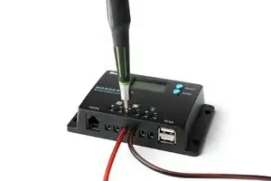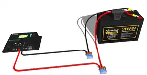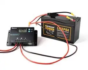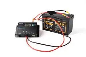- ↑ Pictured here is the Renogy Wanderer 10 A pulse-width-modulation charge controller for 12 V and 24 V PV systems. Any 12 V 10 A or greater charge controller will work (as long as it matches the battery type).
