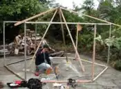 In the Fall of 2006 Russell Kramer began a project to build and live in a yurt in a neighborhood known as Sunny Brae of Arcata, CA. Low materials usage, low cost, excellent feng shui, and outer space withstand-ability were primary goals. Humboldt County is rainy in the winter and spring, so designing to withstand weather has been a front-and-center challenge.
