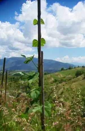 • Starting from the river edge a series of first water loving grasses, then shrubs, then small trees are established going out from the banks. This natural pattern was repeated at Petegral after microfilter dams were placed along the creeks and river to help remove soils and silts from flowing off the land and into the water way and to create zones of revegetation along these creek beds. This series of grass, shrub, small tree goes out from the bank for 20 feet. The roots of the vegetation forms a matrix that helps secure the soil in place.