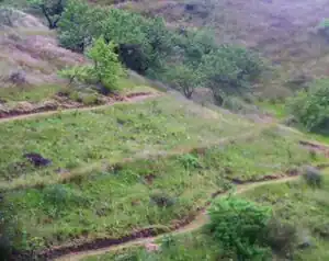 Terraces and ditches at Petregal a Permaculture Demonstration Center in Oaxaca, Mexico.