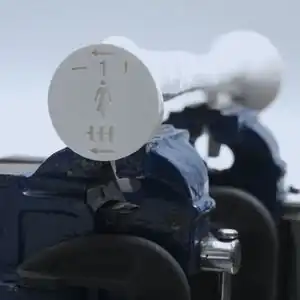 The 3D printed bone models of the Tibial Shaft Transverse Fracture Simulator feature a semi-engraved model number, gender symbol, and two drilling direction arrows on the base of each model to assist with model identification and proper orientation of the simulator.