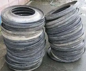 The fabric of the tire is steel, nylon, aramid fiber, rayon, fiberglass, or polyester combination. The rubber is natural and synthetic (hundreds of polymer types). There are plenty of chemicals such as reinforcing chemicals, anti-degradants, adhesion promoters, curatives, and processing aids such as oil. During my research I also found the typical percentages of the (Synthetic Rubber and Natural Rubber) rubber mix in various types of tires. Passenger car tires are 55% to 45%, Light truck tires are 50% to 50%, Race tires are 65% to 35%, and off highway tires 20% - 80%. Next I wanted to know what other problems they may cause other than the environmental impact due to the composition of a tire. I hadn't thought about this but it makes perfect sense. I discovered that tires make the perfect breeding ground for mosquitos. With all of the diseases that mosquitoes are carrying now-a-days these tires are causing a potential threat to public health and safety. Finally, I wanted to know what other methods of tire recycling are out there. I found a company called Rubbur Concepts that uses a compression mold to turn used tires into replica cedar and slate shingles. I also found that old tires are shredded and used in combination with asphalt to pave roads.
