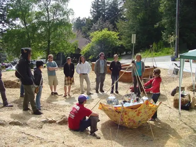 Bamboo was a very liberating resource to use. Being small and strong myself, I felt empowered to work with such a light and strong material. This resource is found all over the globe, and would provide useful for many different projects. This was the first time Bart had worked with bamboo for a solar cooker, and has been very excited with the progress. We even discovered that we were able to bend bamboo by heating it within other solar cookers. Bart had worked on one other umbrella solar cooker in the past, and noted that this one had made vast improvements from the last. The main distinction is that this Para(bolic) Sol(ar cooker) is able to focus light to a spot, where the last could only focus light to a line. This is because we used bamboo and cardboard, which were materials that could be bent. It should also be noted that since we were able to be successful in the foggy climate of Arcata, it is highly possible to successfully solar cook nearly anywhere else!