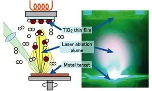 In PVD, methods are used to react with precursor material in the deposition chamber which than react with the substrate. Enormous amounts of energy are used to physically break bonds, distort lattices and embed vaporized material onto and into the substrate causing a film to forcibly be deposited. Often laser pulses, magnetic sputtering and arc evaporation are examples of how this process works. Lasers are used to break bonds and force material to become ejected. Magnetic sputtering utilized magnetic fields to attract ionized precursor material to precursor to eject it and cause it to react with substrate by high impact forces which embedded film on the substrate. Arc evaporation use high voltages to melt material and create temporary charged plumes into charged plasma which attracts vaporized material, than quickly cools.[5]