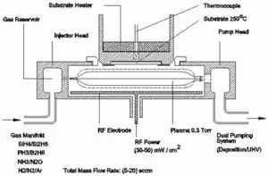 Plasma Enhanced Chemical Vapor Deposition is mainly used for the deposition of dielectric films and passivation films like silicon oxide or nitride at low temperature. This type of process is driven by the heating of a gas or plasma rather than the sequestered material. This process is ideal when dopants are relatively low.